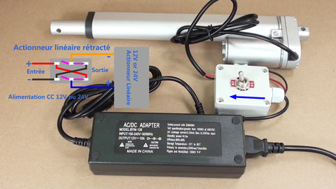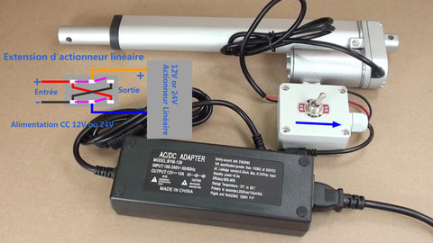 2) Interrupteur Commande Manuelle d'actionneur linéaire électrique 12V 24V avec Poignée Filaire et Alimentation CA-CC