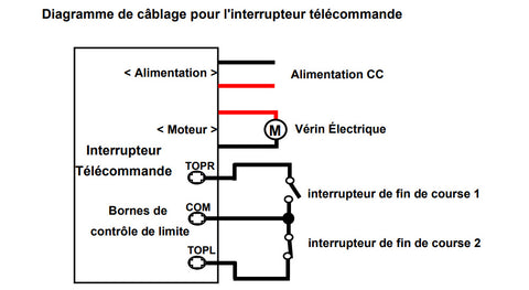 Si vous utilisez un interrupteur télécommande pour contrôler du vérin électrique, faire comme suivant :