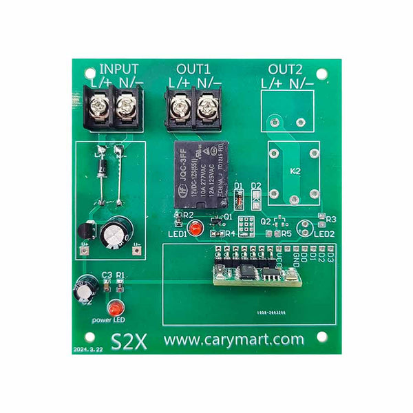 Quand vous réglez le récepteur en mode interblocage, il devrait fonctionner avec un émetteur avec deux boutons, par exemple modèle C-2 (100 mètres)CP-2 (500 mètres)CD-2 (Étanche, Industriel, 1000 mètres), et CB-2 (1000 mètres).