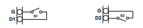 Connectez deux interrupteurs limites normalement ouvert aux deux terminaux "G" et "D" respectivement, et connectez-les comme indiqué ci-dessous: