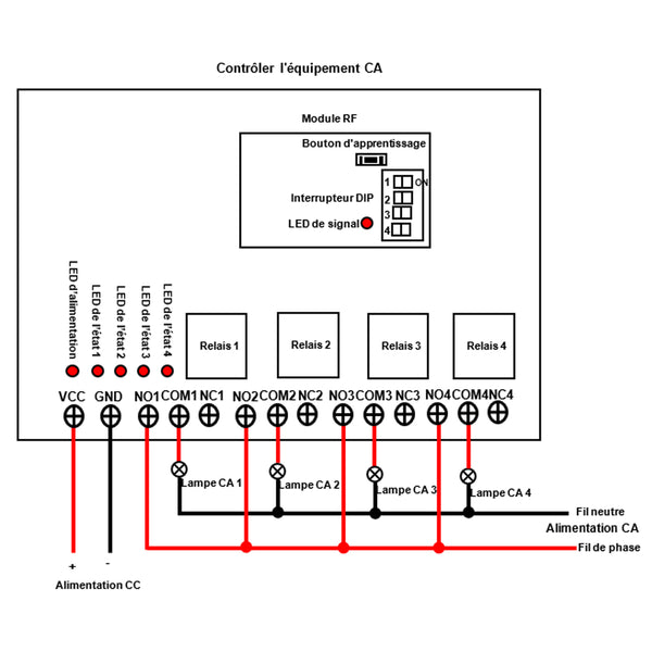 Le récepteur peut être utilisé pour contrôler des équipements DC 0 ~ 28V et AC 110 ~ 240V.